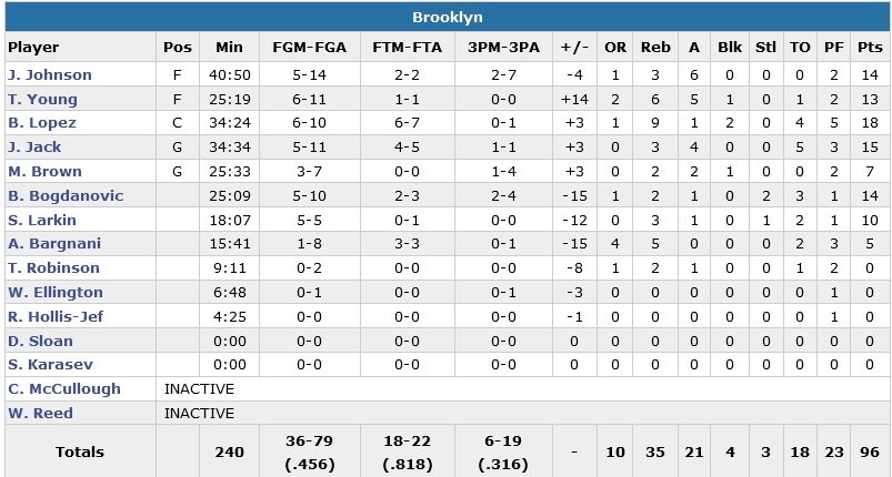 Loin d’avoir été donné, le succès des visiteurs du jour au Barclays Center s’est décidé dans les dernières minutes du match. Brooklyn, porté par les 18 points et 9 rebonds de Brook Lopez et 15 points de Jarrett Jack, est encore devant 96-94 suite à un panier intérieur de Shane Larkin à 2’45 de la fin. Monroe égalise, Michael Carter-Williams vole un ballon des mains de Bojan Bogdanovic à 1’30 et Middleton convertit à 5 mètres, 98-96 Bucks. Joe Johnson (14 points à 6/14, 3 rebonds, 6 passes) rate ensuite sa chance à 3-points. Carter-Williams sanctionne de l’autre côté en provoquant une faute de Thomas Robinson. Le meneur rentre 1 de ses deux lancers-francs pour donner trois points d’avance aux siens, 99-96.