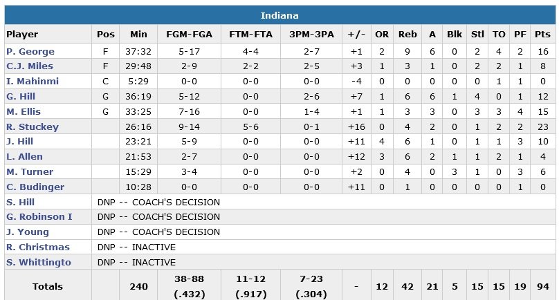 Rodney Stuckey a brillé face à son ancienne équipe cette nuit (23 points à 9/14 en sortie de banc) et Paul George ajoute 16 points (5/17, 9 rebonds, 5 passes) dans la première victoire d’Indiana cette saison, 94-82. Les Pacers restaient sur 3 défaites face à Toronto, Memphis et Utah.