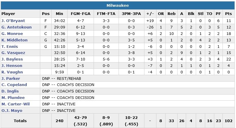 Milwaukee perd au passage son 6e match d’affilée à Denver. Danilo Gallinari, auteur du shoot qui a permis à Faried (19 points) de rentrer les deux points décisifs, signe 25 points alors qu’Emmanuel Mudiay continue d’impressionner avec 16 points et 11 passes, son deuxième double-double en carrière. Les Bucks y ont cru jusqu’au bout grâce à un Jerryd Bayless en feu dans le quatrième quart-temps (14 de ses 22 points dans la période).