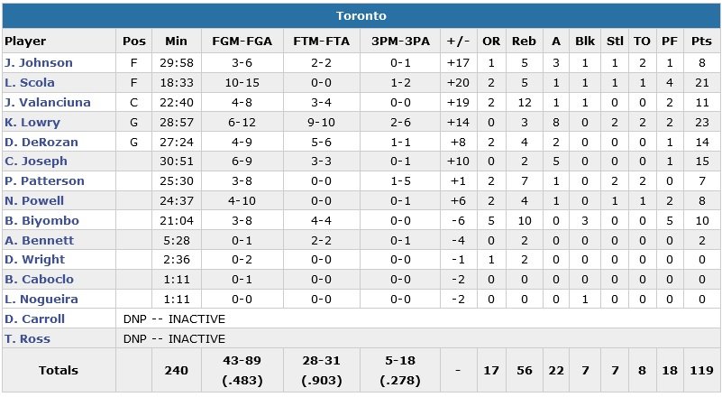 L’Argentin marque 17 points à 8/10 dans un troisième quart-temps décisif pour Toronto. Natif de Philadelphie et joueur de Villanova durant 2 saisons, Lowry a reçu de chaleureux applaudissements au Wells Fargo Center et il inscrit de son côté 14 points en première mi-temps, dont un buzzer de plus de 8 mètres à 0.9 seconde de la fin du deuxième quart, 63-57. Les Raptors prendront ensuite jusqu’à 20 points d’avance sans jamais que les 76ers ne parviennent à les faire douter, malgré une nouvelle bonne performance de Jahlil Okafor avec 26 points et 7 rebonds.