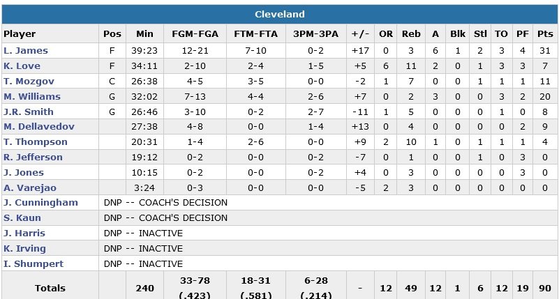 Grâce aux 31 points (12/21, 3 rebonds, 6 passes) de LeBron James et à un panier égalisateur de Mo Williams (20 points à 7/13 et 3 passes) à 41 secondes du buzzer, les Cleveland Cavaliers sont repartis du Madison Square Garden avec une nouvelle victoire, la 8e de rang.