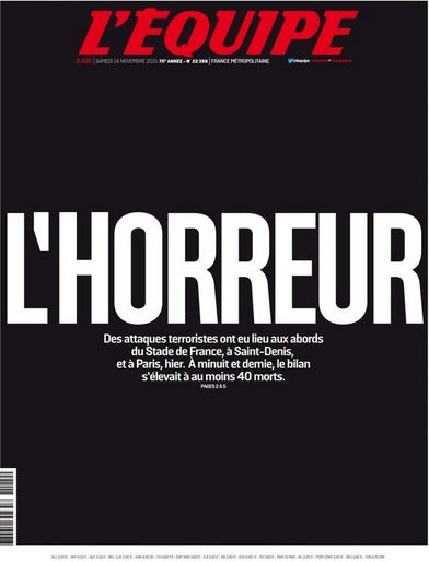 Le quotidien français a consacré sa Une aux attaques terroristes de Paris, hier.