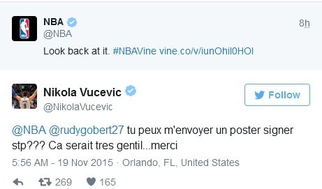 Un joueur NBA est aussi venu taquiner le pivot du Jazz… Nikola Vucevic lui a en effet demandé un poster dédicacé…