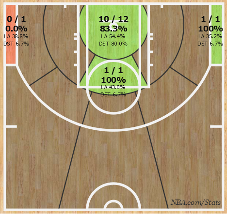 En attaque il a montré des choses très intéressantes avec des moves au poste et quelques dunks. Il a surtout était présent près du cercle, où il est le plus efficace.