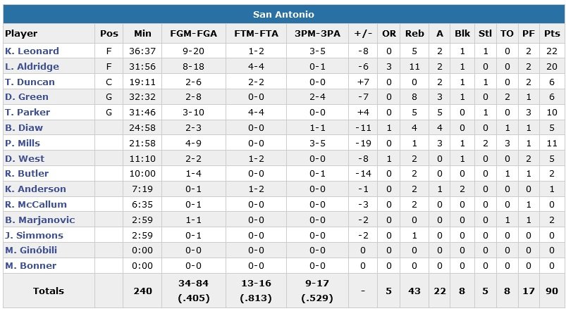 À noter : pour la première fois de sa carrière, Tim Duncan n’a pas pris le moindre rebond cette nuit.