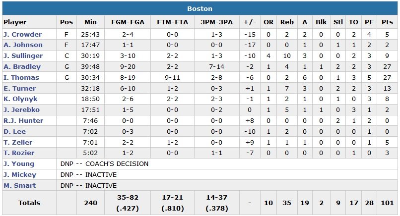 L’écart passe à 22 points 67-45 en début de troisième quart-temps mais Thomas plante 15 points et Bradley trois 3-points dans la période. Les Celtics infligent un 36-27 aux Nets dans ce troisième quart-temps mais ne parviendra pas à maintenir ce niveau de jeu dans les 12 dernières minute. Après que Boston soit revenu à 4 points 90-86, Jack rentre 13 points décisifs dans les 8 dernières minutes pour assurer la victoire des siens.