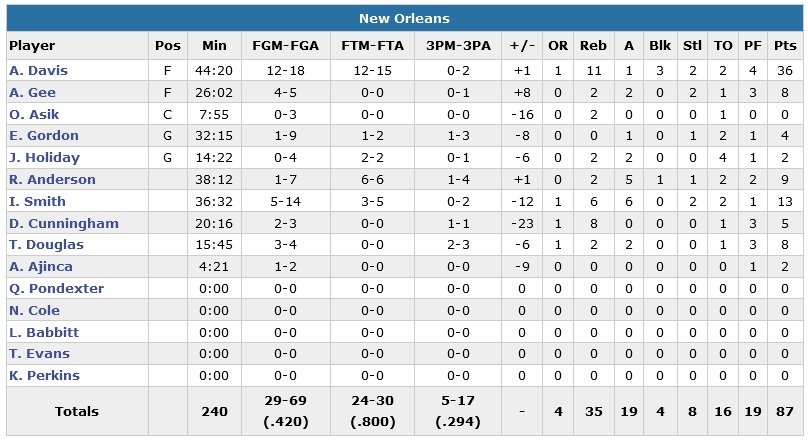 Jrue Holiday (2 points à 0/4, 2 rebonds, 2 passes) a retrouvé sa place dans le 5 majeur de New Orleans, qui a tenté un comeback en vain dans le 4e quart-temps, mais il ne joue que 14 minutes. Ish Smith se révèle efficace en sortie de banc avec 13 points à 5/14, 6 rebonds et 6 passes.