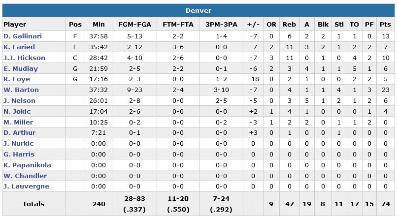 À noter : Tobias Harris a signé 17 points, Andrew Nicholson a gobé 14 rebonds pour Orlando, qui a dominé le rebond 54 à 47. Le Magic survit également à 20 ballons perdus (17 pour Denver, qui ne shoote au passage qu’à 33.7% contre 42.7% pour Orlando).