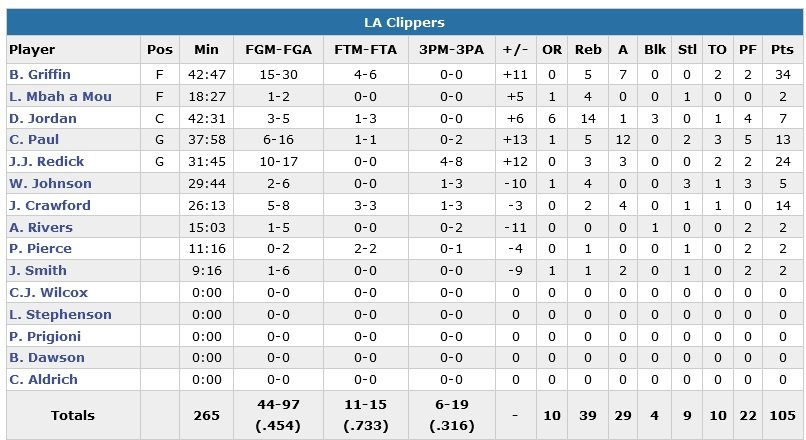 Griffin et Crawford n’ont pas été les seuls à contribuer à ce 5e succès en 6 matchs puisque J.J. Redick ajoute 24 points à 10/17 et Chris Paul 13 points à 6/16, 5 rebonds et 12 passes. Los Angeles (qui rate 10 de ses 14 premiers tirs dans le 4e quart-temps) ne perd que 10 ballons en 53 minutes mais est largement dominé au rebond (53-39) malgré les 14 prises de DeAndre Jordan.