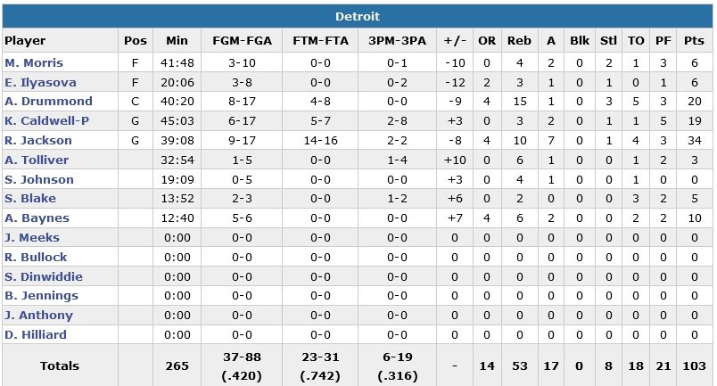 L’autre héros du match, c’est Blake Griffin, avec 34 points à 15/30, 5 rebonds et 7 passes mais surtout deux lancers-francs cruciaux à 38.8 secondes pour placer les Clippers devant 102-101. Kentavious Caldwell-Pope va égaliser derrière en faisant 1/2 à 30.5 secondes. Après le panier de Crawford, Los Angeles fait faute sur Reggie Jackson (énorme avec 34 points à 9/17, 10 rebonds et 7 passes) à 9.3 secondes. À 14/16 aux lancers sur le match, il n’en rentre qu’un sur deux. Andre Drummond (20 points à 8/17, 15 rebonds et 3 interceptions) a deux chances de rajouter deux points sur rebond offensif mais manque les deux. Jackson va ensuite rater le shoot du désespoir au buzzer pour les Pistons.