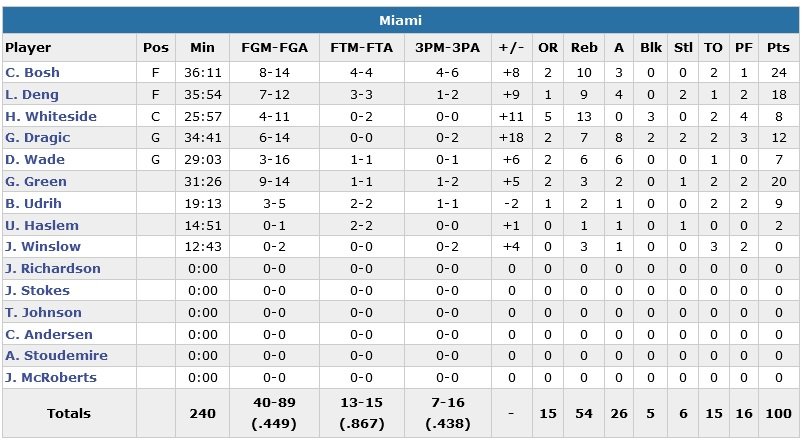Depuis son très bon départ (7V-1D), Atlanta (60 victoires la saison passée) a perdu 11 de ses 17 derniers matchs. Kent Bazemore a effectué son retour dans le 5 majeur et a fêté ça en battant son record en carrière (28 points à 11/18 et 5 rebonds) mais n’a pas reçu énormément d’aide, son équipe shootant à 39.3% sur la rencontre. Miami avait de son côté effacé une série de 3 défaites contre Memphis hier et ce malgré un déficit de 16 points dans la rencontre. Cette fois, les Floridiens ont confortablement mené tout au long du match. Malgré un morceau de dent arraché dans le troisième quart-temps, Goran Dragic a poursuivi son match après l’arrêt des saignements et termine à 12 points à 6/14, 7 rebonds et 8 passes.