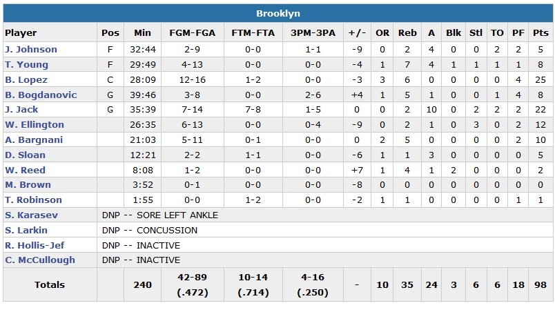 Les Nets perdent de leur côté une 3e rencontre de suite face aux 16 points de Goran Dragic, 13 de Gerald Green et 11 de Justise Winslow. Brook Lopez termine à 25 points, Jarrett Jack à 22 points et 10 passe. Les joueurs de Lionel Hollins prennent le meilleur départ et mènent de 10 points 26-16 sur un 3-points de Bojan Bogdanovic à 2’49 de la fin du premier quart. Miami revient et prend la tête 44-42 sur un 3-points de Green à 4’58 de la fin de la première mi-temps. Le Heat prend ensuite 5 points d’avance sur un coast-to-coast signé Dragic.