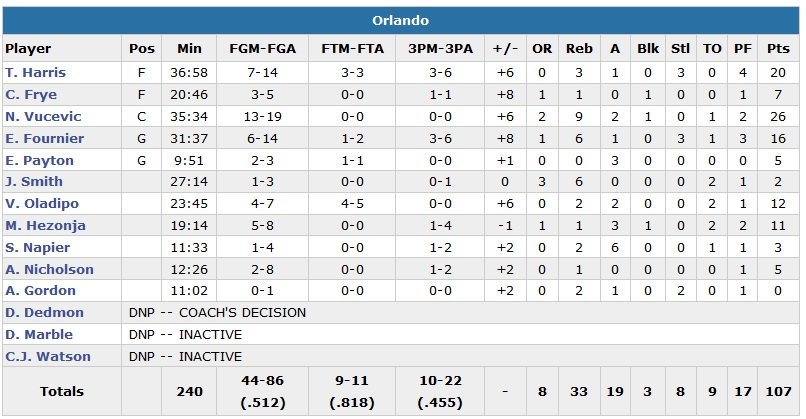 Avec de très bons Nikola Vucevic (26 points à 13/19 et 9 rebonds) et Evan Fournier (16 points à 6/14, 6 rebonds et 3 interceptions), le Magic a remporté une 4e victoire en 5 matchs tout en cassant la bonne série des Knicks (4-0) cette nuit, 107-99.