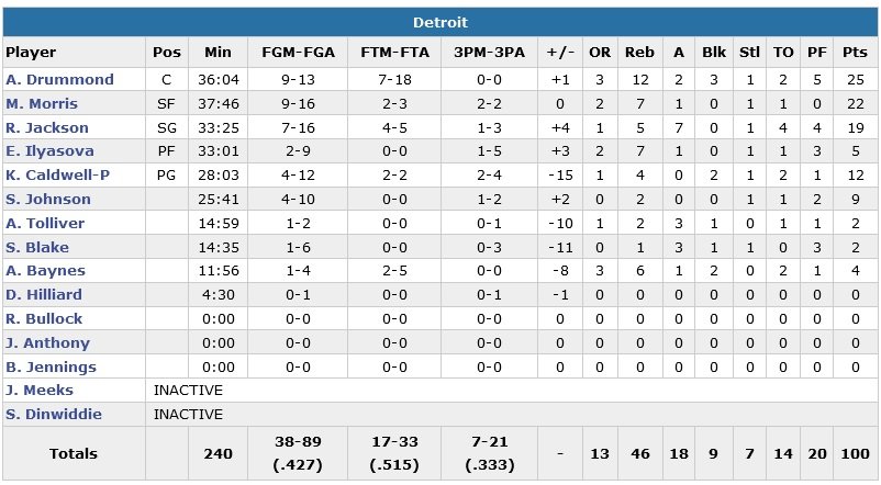 5e victoire consécutive des Hawks avec 23 points de Jeff Teague (10/19, 6 rebonds, 9 passes, 4 interceptions) et 18 de Paul Millsap (8/15, 5 rebonds, 2 passes) cette nuit. Atlanta met fin à la série de 3 victoires des Pistons, qui restaient sur 5 succès en 6 matchs.