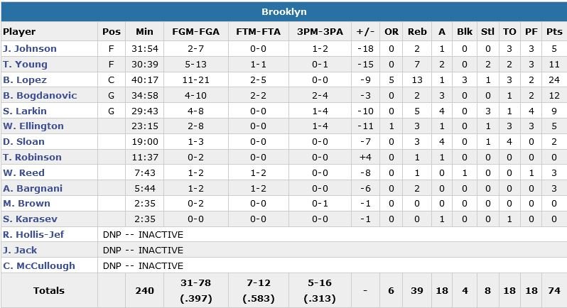 Hués ici et là par leur public dans le 4e quart-temps, les Nets (dominés 49-39 au rebond) encaissent un 16-2 juste avant de rentrer au vestiaire puis un 13-4 pour finir le 3e quart-temps à -14, 70-56. L’écart atteindra les 18 points sans que Brooklyn ne parvienne à descendre sous les 10 points.