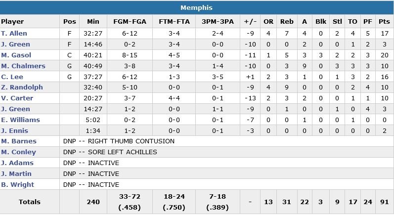 À noter : Les Rockets ont shooté à 18/35 à 3-points contre 7/18 pour Memphis dans ce match. Ils ont aussi inscrit 28 points sur seconde chance, contre seulement 12 pour leurs adversaires. Memphis jouait sans Mike Conley pour la 4e fois d’affilée (tendon d’Achille) et sans Matt Barnes, touché au pouce droit. Ty Lawson a lui purgé son dernier match de suspension.