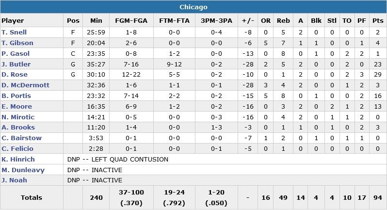 Les Warriors ont pris le large dès le 1er quart-temps (34-18) sans jamais regarder derrière. Derrick Rose a eu beau inscrire 29 points à 12/22 et Jimmy Butler (23 points mais seulement 4 en 1ère mi-temps), les Bulls payent cash le rare non-match de Pau Gasol (1 point à 0/8 et 8 rebonds) même si Bobby Portis remplit à merveille son rôle de remplaçant (16 points à 7/14 et 8 rebonds). Chicago a par ailleurs shooté à un horrible 1/20 à 3-points et perd donc sans surprise un 5e match en 7 rencontres.