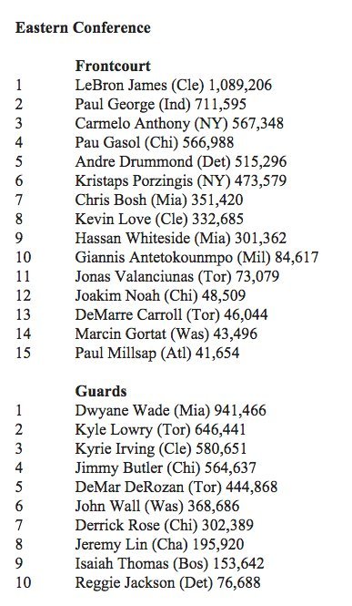 2016 Eastern Conf. @NBAAllStar Starters: @KingJames, @DwyaneWade, @KLow7, @YG_Trece & @CarmeloAnthony! #NBAAllStarTO pic.twitter.com/vgdXBqgPoG
