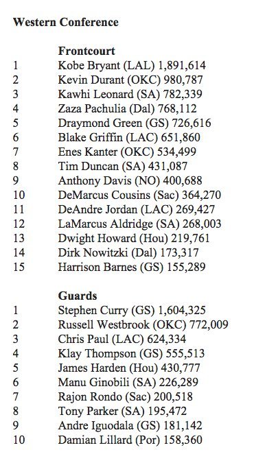 Ouest: Kobe Bryant, Kevin Durant, Kawhi Leonard, Stephen Curry et Russell Westbrook.