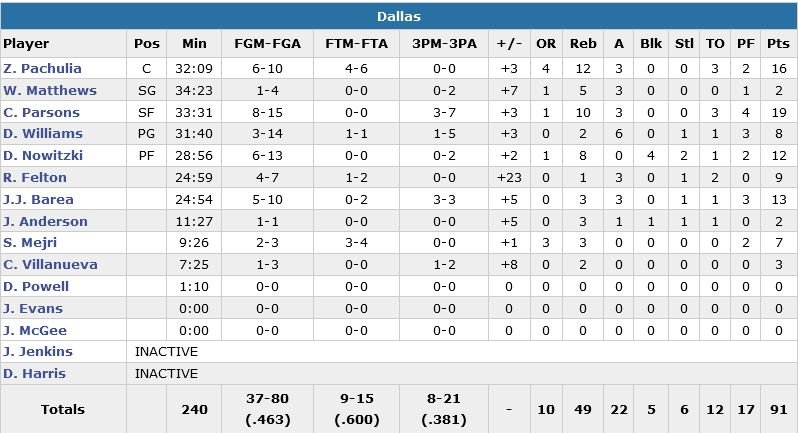 Parsons termine meilleur scoreur de Dallas pour la 5e fois en 6 matchs et tourne à 24 points de moyenne durant cette période. Brook Lopez mène les Nets (qui restaient sur 4 victoires à Dallas) avec 28 points (10/21, 12 rebonds, 3 passes et 2 contres). Les Mavericks se construisent une avance de 18 points en 1ère mi-temps et n’ont pas laissé leurs adversaires revenir à moins de 7 points en 2e.
