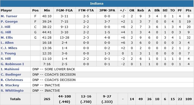 Ellis a manqué l’occasion de tuer le match à 3-points à la fin du 4e quart-temps (99-99) mais il convertit un 2+1 à 20.4 secondes de la fin de la prolongation. Jordan Hill et Paul George terminent respectivement à 20 points à 9/13, 7 rebonds, 3 passes et 6 contres et 19 points à 7/15, 3 rebonds et 7 passes. Côté Nuggets, on retrouve Danilo Gallinari avec 23 points (8/17), Kenneth Faried (16 points à 6/10 et 12 rebonds), Gary Harris (18 pointsà 7/11) et Nikola Jokic avec 16 points à 7/15, 11 rebonds et 5 interceptions.