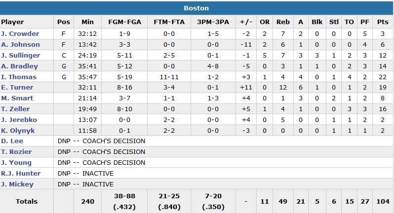 Encore menés de 5 points à 18 secondes de la fin, les Celtics refont surface avec un 3-points de Jae Crowder – son seul panier du match – et un layup d’Evan Turner (19 points et 12 rebonds) qui obtient le layup plus la faute de J.R. Smith à 4 secondes du buzzer. Turner manque son lancer-franc mais le ballon part en sortie, touché par LeBron James. Après un système dessiné par Stevens durant un dernier temps-mort, Bradley décale Iman Shumpert après qu’Isaiah Thomas (22 points) ait fixé 2 joueurs en feintant un drive, swish !