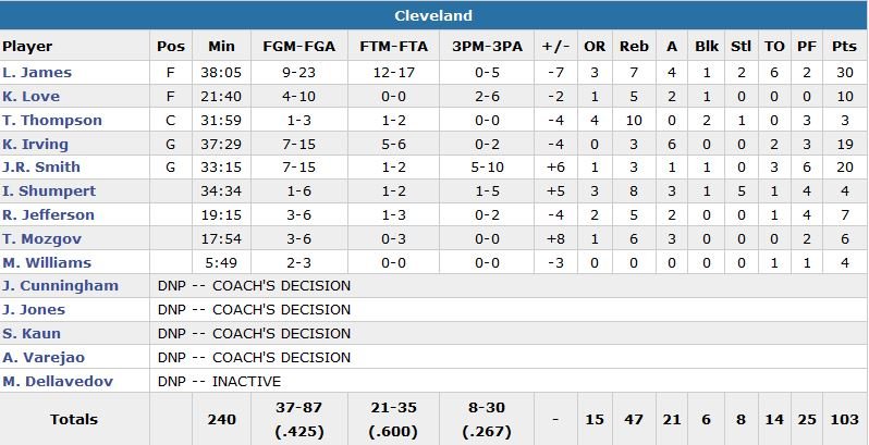 À noter : Kevin Love est sorti sur blessure (cuisse) dans le 3e quart-temps.