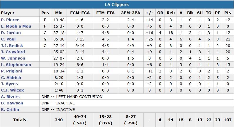 5e succès en 6 matchs pour les Clippers de Chris Paul (21 points à 8/15, 4 rebonds et 6 passes), DeAndre Jordan (12 points à 4/7, 18 rebonds et 3 contres), J.J. Redick et Jamal Crawford (20 points chacun) hier avec une victoire 107-93 aux dépens à Orlando.