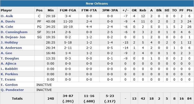 Kyrie Irving (29 points à 11/21) et LeBron James (27 points à 11/20 et 8 passes) ont pris leurs responsabilités cette nuit pour éviter une nouvelle déconvenue aux Cavaliers (défaits par Charlotte et Boston sur leurs 2 derniers matchs). Ils s’imposent 99-84 face aux Pelicans de Norris Cole (26 points – record en carrière – à 10/19) et Anthony Davis (24 points à 11/20 et 11 rebonds).