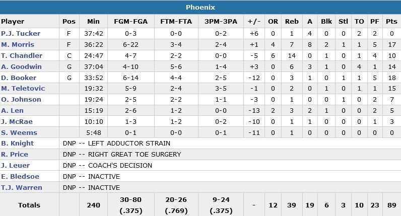 Mirza Teletovic (15 points) rentre un 3-points qui permet à Phoenix de revenir à 75-65 au terme d’un 7-0 à 10’09 mais Hood encore lui enchaîne 2 paniers consécutifs. Phoenix recolle à 84-75 sur un step back de Booker à 3’30. La jeune gâchette récidive et porte le score à 94-88 à 1’34. Rudy Gobert (13 points, 13 rebonds et 4 contres) qui a inscrit 9 lancers sur 12 possibles dans le 4e quart, signe un 2/2 sur la ligne à 1’22 pour définitivement rassurer les siens, 96-88. Au final, le Jazz n’aura jamais été mené dans ce match.