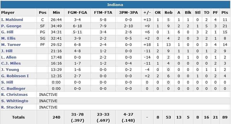 À noter : Roy Hibbert n’a pas joué (entorse de la cheville gauche).
