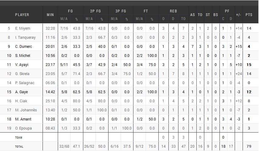 Elles ont démarré très fort avec un 28-12 dès la fin du premier quart-temps, dans lequel elles sont shooté à 59% tout en limitant leurs adversaires à seulement 25% ! À 6 minutes de la mi-temps les Croates reviennent à 10 points mais les Françaises gèrent bien leur avance et sont toujours largement en tête 48-29 à la pause. L’écart grimpe à 57-33 dans le 3e et même si la Croatie domine la période et revient même à 76-69 à 1 minute de la fin, la France garde l’avantage 73-57 à 4’40 du buzzer final avant de s’imposer 79-70.