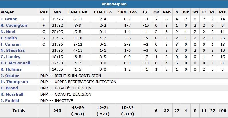 À noter : Nerlens Noel a rentré son 1er 3-points en carrière dans le 3e quart-temps (son 3e essai en carrière).
