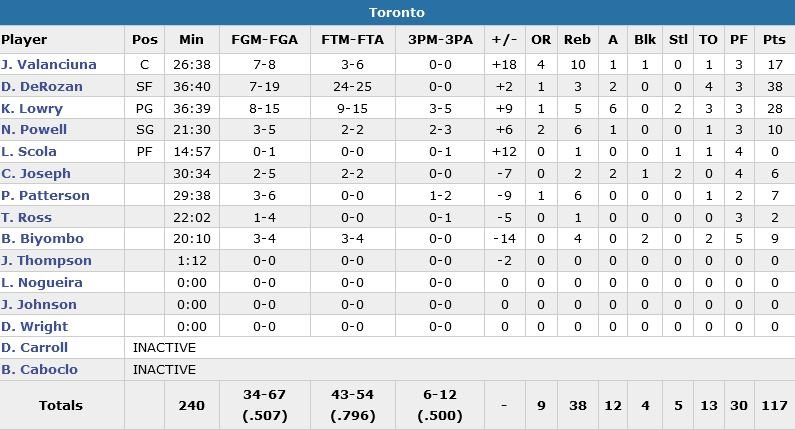 DeMar DeRozan (38 points à 8/19 et 24/25 aux lancers-francs, 3 rebonds et 2 passes) et Kyle Lowry (28 points à 8/15, 5 rebonds et 6 passes) ont survécu à l’énorme soirée de Damian Lillard, auteur de 50 points (à un point de son record en carrière établi le mois dernier dans une victoire 137-105 sur Golden State) à 16/28 et 5 passes dans la défaite des siens 117-115 cette nuit. DeRozan en profite pour établir un nouveau record de lancers francs réussis consécutivement dans un match avec 24 (Dominique Wilkins en avait signé 23).