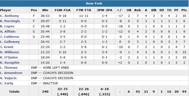 Nikola Jokic score lui 8 de ses 20 points dans le 4e quart-temps pour des Nuggets qui comptent 6 joueurs à au moins 10 points. Carmelo Anthony termine lui à 30 points (9/18, 7 rebonds, 4 passes et 3 contres) mais n’a toujours pas gagné (0-3) contre son ancienne équipe depuis son transfert en février 2011. De retour après un match d’absence en raison d’une petite blessure à la jambe gauche, Kristaps Porzingis a été limité à 6 points à 3/11, 5 rebonds 3 passes et 2 contres. Les Knicks ont dû faire sans leur ailier Lance Thomas, leur homme à tout faire en défense, dont le genou gauche était trop douloureux à l’échauffement.