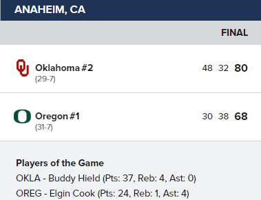 Oklahoma a dominé Oregon 80-68 dans le sillage d’un Buddy Hield totalement intenable avec 37 points à 13/20.