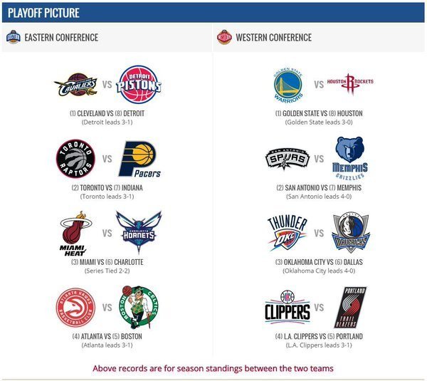 Voilà, on connait les 8 affiches du premier tour des playoffs NBA, les Rockets étant la dernière équipe à avoir décroché son billet. A l’Est, pas moins de 4 équipes ont terminé avec le même bilan des places 3 à 6.