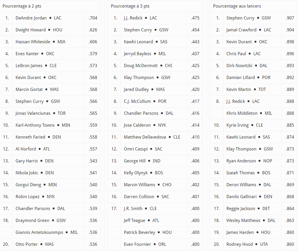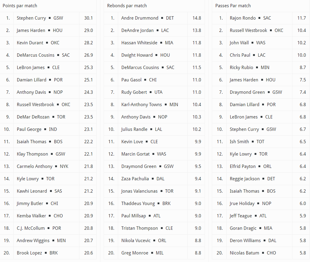 Les playoffs débutent ce soir et avant ça, retour sur les statistiques individuelles avec les meilleurs joueurs sur la saison dans les principales catégories.