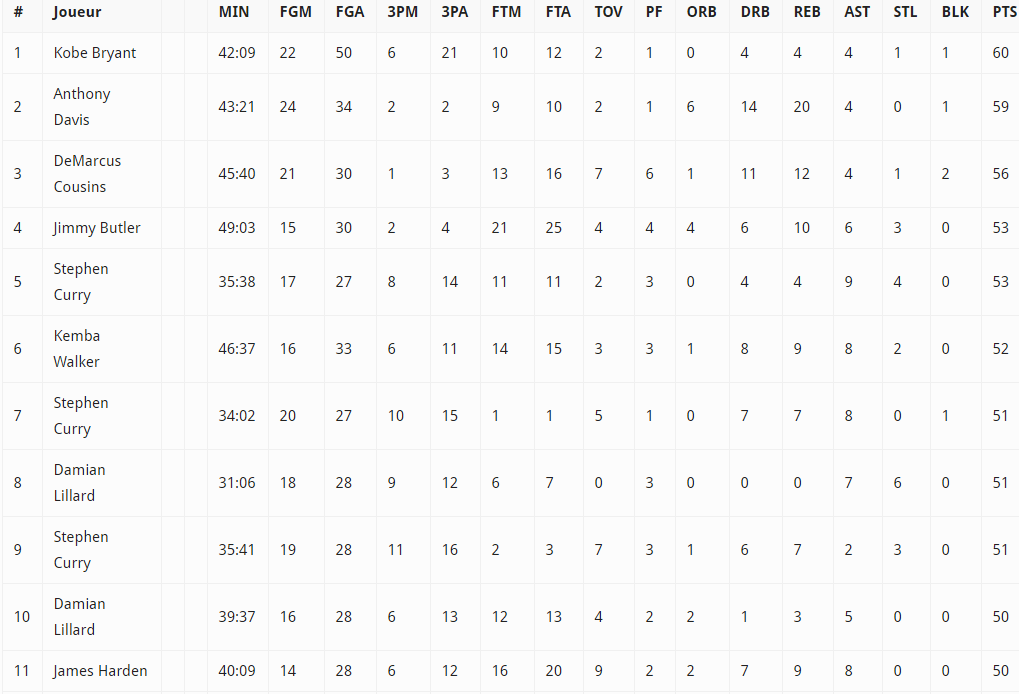 Les meilleures performances sur un match