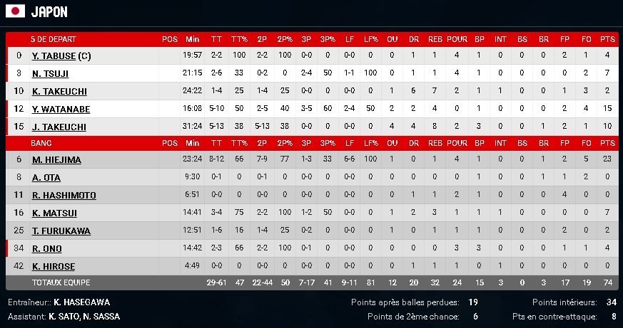 Dans le sillage d’un Makoto Jiejima intenable, le Japon a réduit l’écart à 21 points puis même 17 points dans les dernières minutes. Mais la France a tranquillement (un peu trop ?) fini son match malgré un dernier coup d’accélérateur de TP.