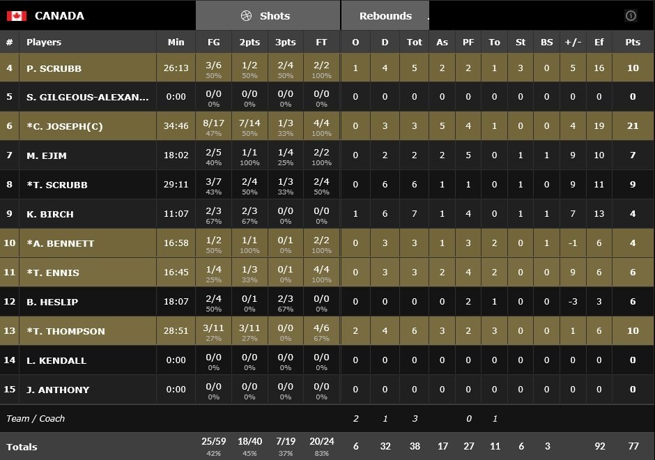 Bonne entrée dans la compétition pour le Canada vainqueur d’une équipe turque peu inspirée sur le score de 77-69. Le Canada s’est montré solide en défense et a pu compter sur un excellent Cory Joseph, homme du match avec 21 points. Tristan Thompson a été actif mais très brouillon avec 10 points à 3/11 et 6 rebonds. La Turquie a shooté à seulement 36% et un catastrophique 19/34 sur la ligne des lancers. Ali Muhammed a connu un calvaire avec 1 point à 0/8. Sinan Güler a été le meilleur turc avec 14 points.