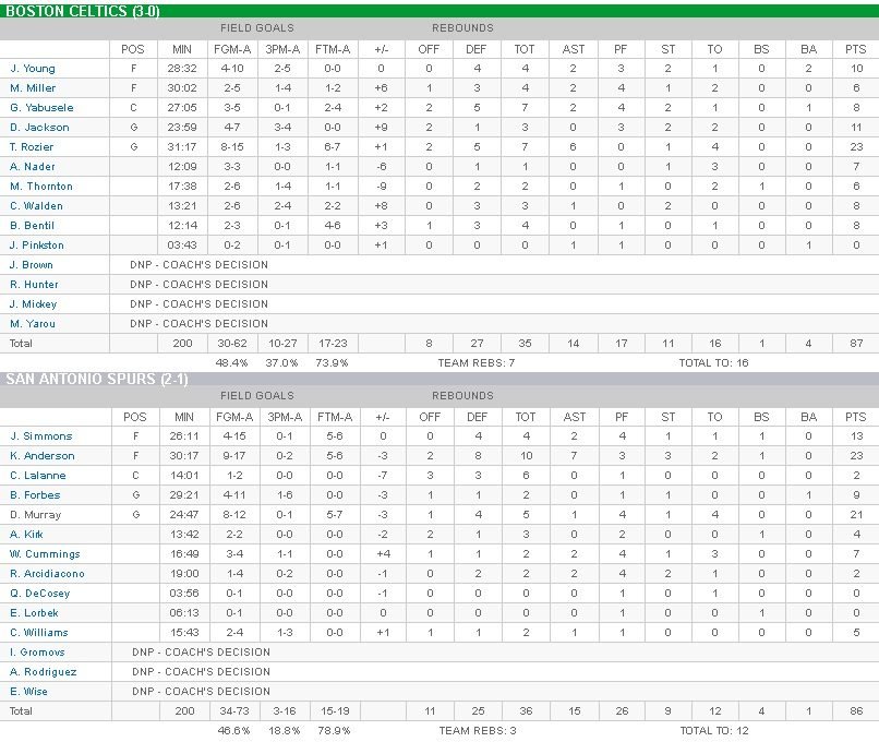 Boston Celtics – San Antonio Spurs 87-86
