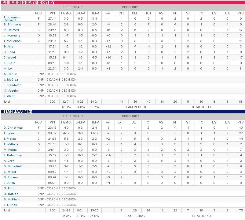 Philadelphia Sixers – Utah Jazz 86-75