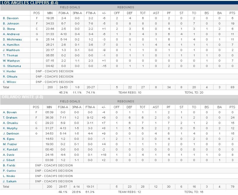 Orlando White – Los Angeles Clippers 79-69