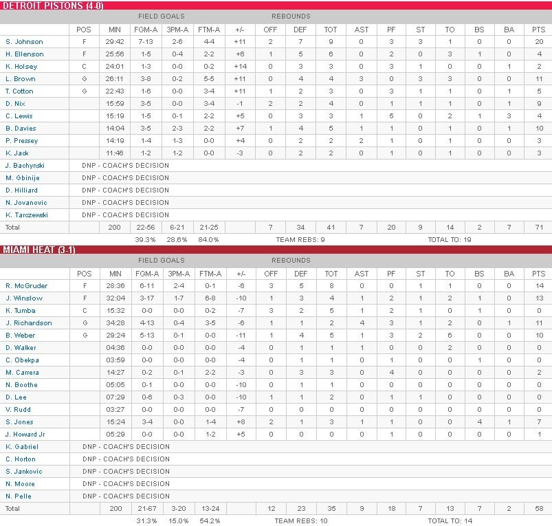 Detroit Pistons – Miami Heat 71-58
