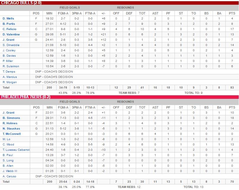 Chicago Bulls – Philadelphia 76ers 83-70