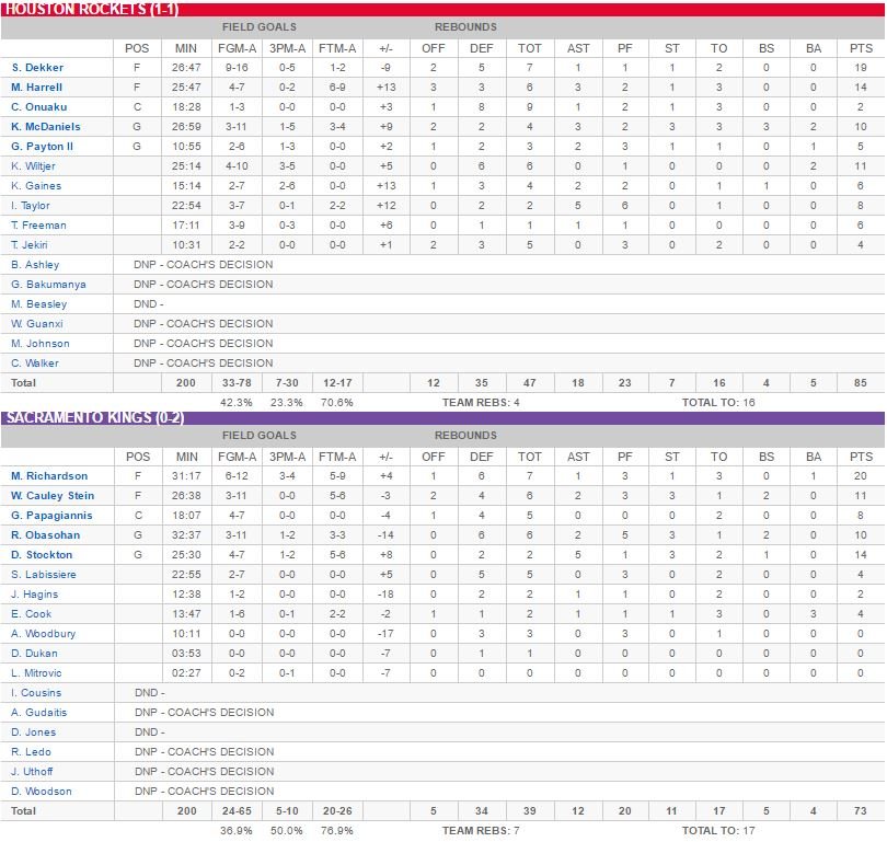 Houston Rockets- Sacramento Kings 85-73