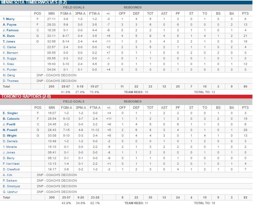 Toronto Raptors – Minnesota Timberwolves 82-80