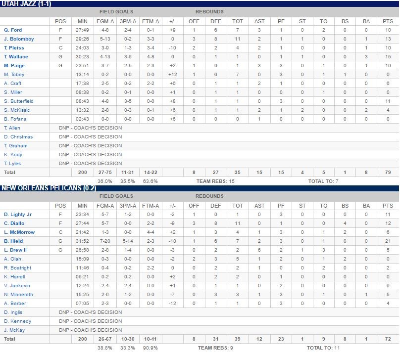 Utah Jazz – New Orleans Pelicans 79-72