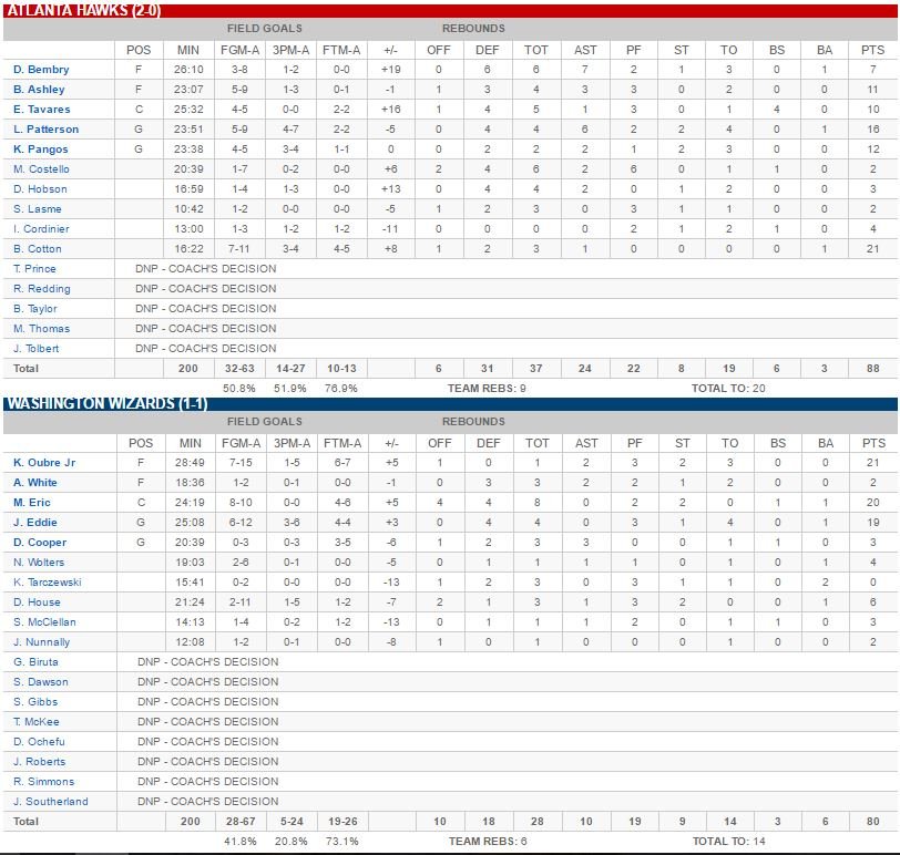 Atlanta Hawks – Washington Wizards 88-80